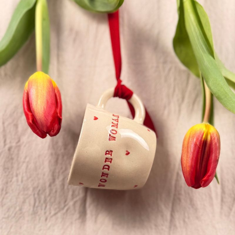 Ten wyjątkowy kubek to hołd dla siły, odwagi i kobiecej energii. W całości wykonany i malowany ręcznie, powstał z naturalnej gliny, której ciepły odcień podkreśla jego autentyczny charakter. Nieregularna, ręcznie gnieciona forma sprawia, że każdy egzemplarz jest niepowtarzalny - dokładnie tak jak każda Wonder Woman. Delikatna linia inspirowana filiżanką nadaje mu subtelności, a ręcznie malowane czerwone serduszka dodają lekkości i czułości. Kontrastuje z nimi wyrazisty napis WONDER WOMAN - symbol kobiecej mocy, determinacji i odwagi do bycia sobą. To codzienne przypomnienie, że siła nie wyklucza delikatności – one mogą iść w parze. Idealny na poranną kawę przed podbijaniem świata lub wieczorną herbatę po dniu pełnym wyzwań. Sprawdzi się również jako wyjątkowy prezent dla kobiety, która inspiruje, wspiera i każdego dnia udowadnia, że ma w sobie supermoc.